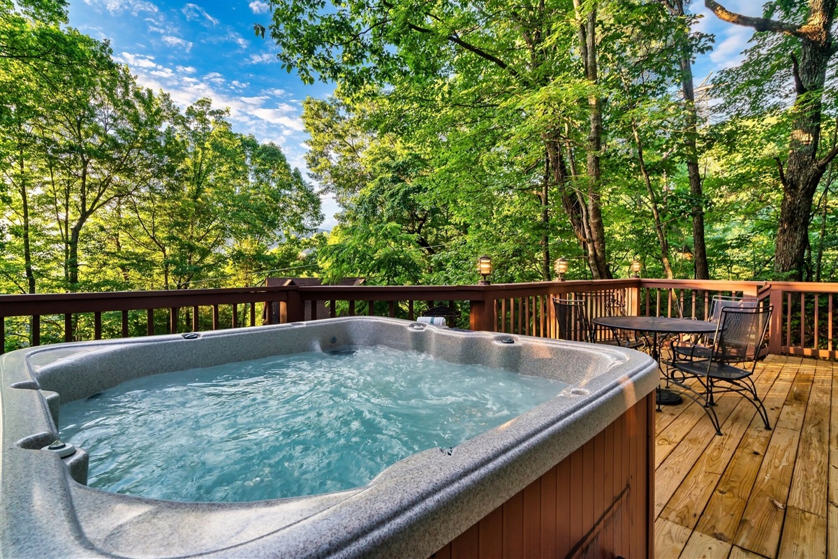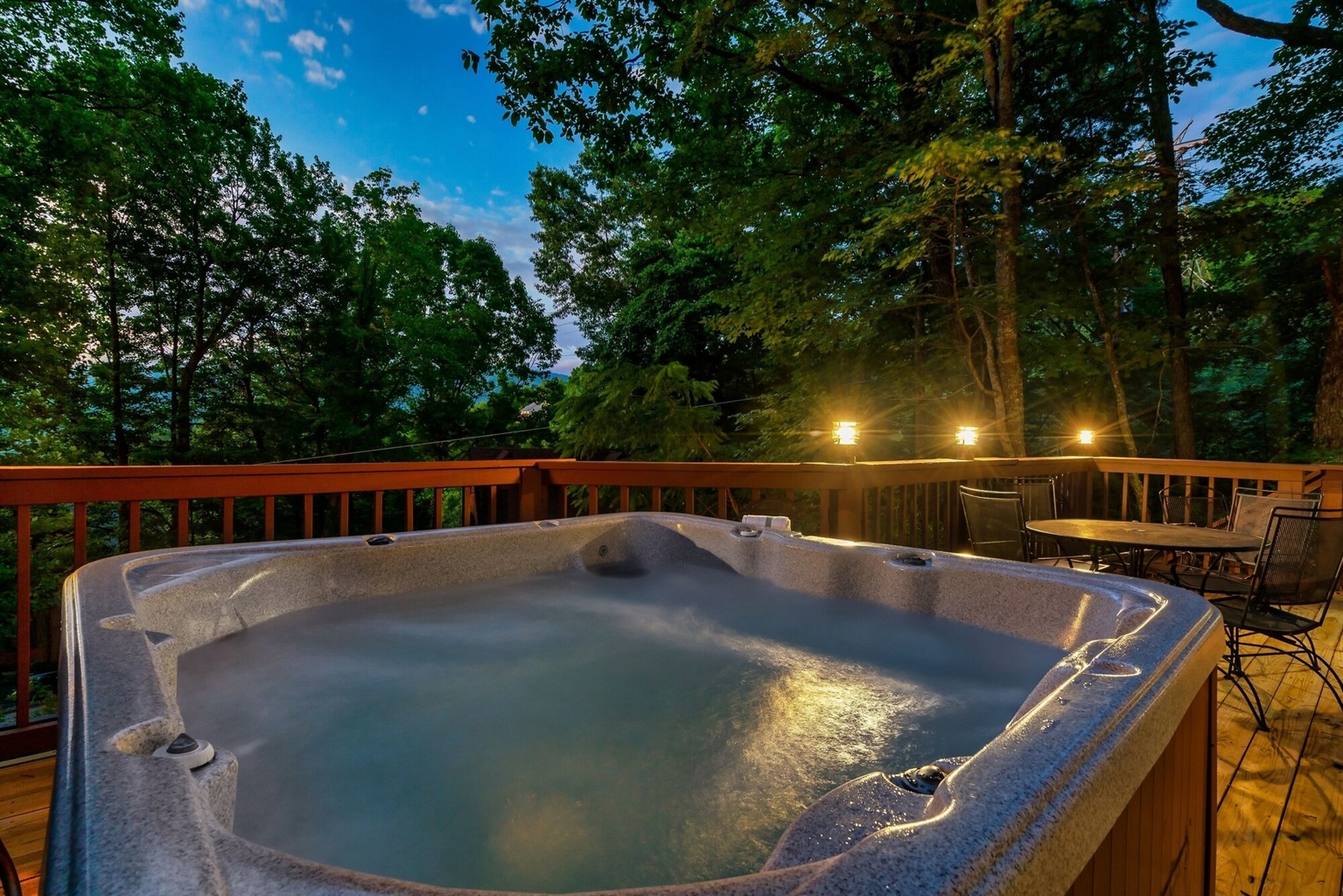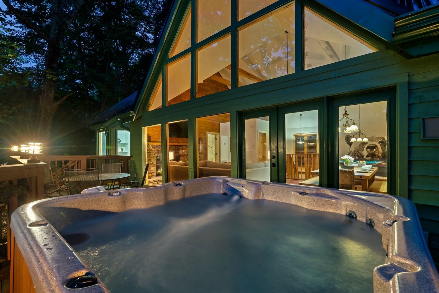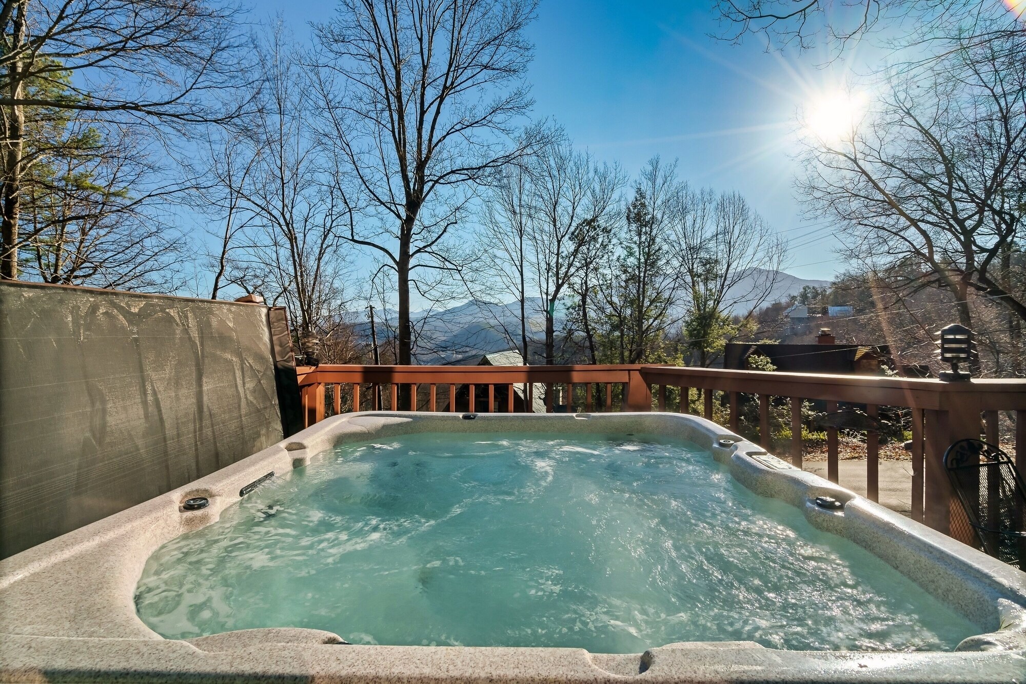 Step onto the large deck from the great room to find a hot tub awaiting you. Immerse yourself in its warmth while taking in breathtaking views of the Smoky Mountains, creating the perfect backdrop for relaxation and family bonding.