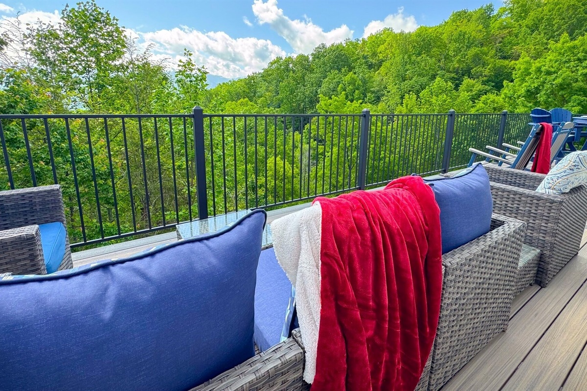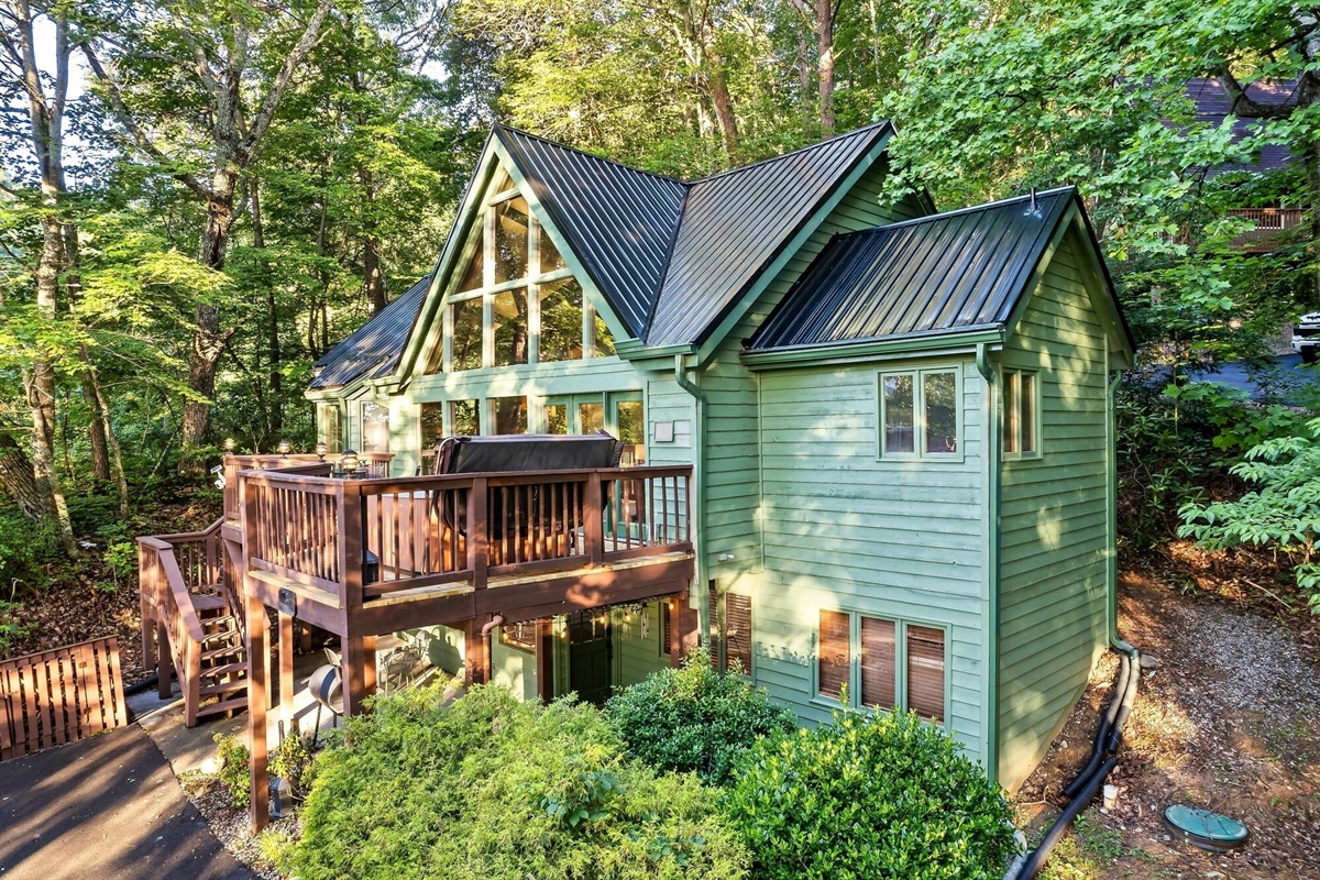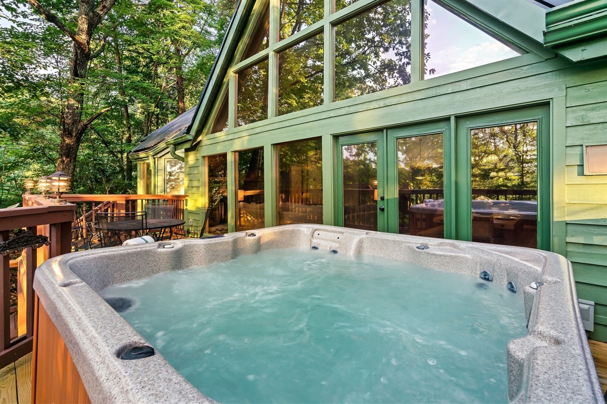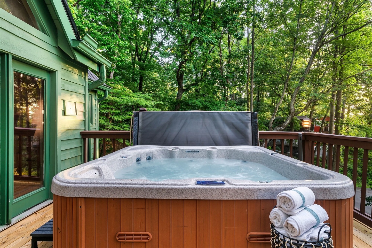 Step onto the large deck from the great room to find a hot tub awaiting you. Immerse yourself in its warmth while taking in breathtaking views of the Smoky Mountains, creating the perfect backdrop for relaxation and family bonding.