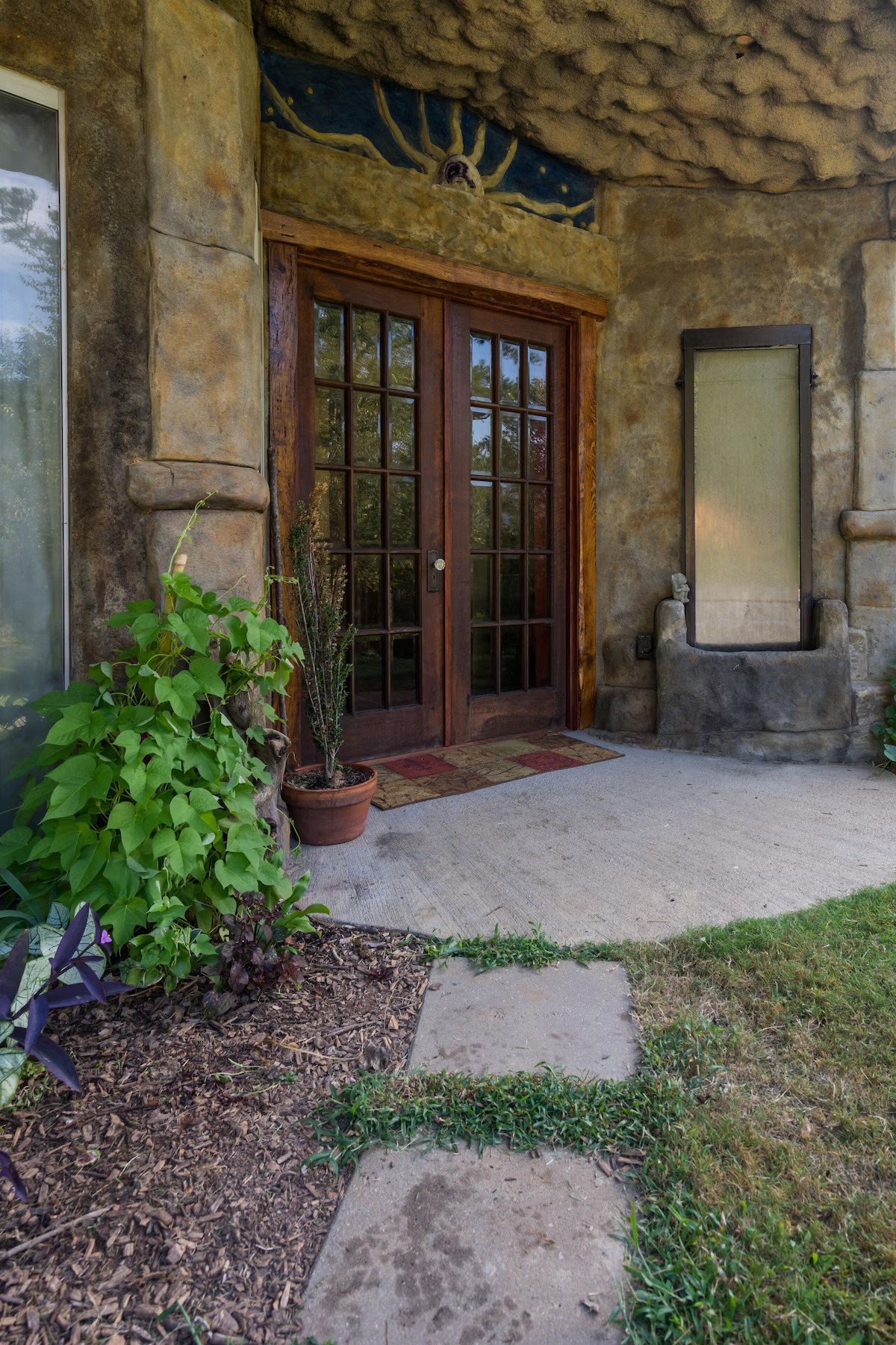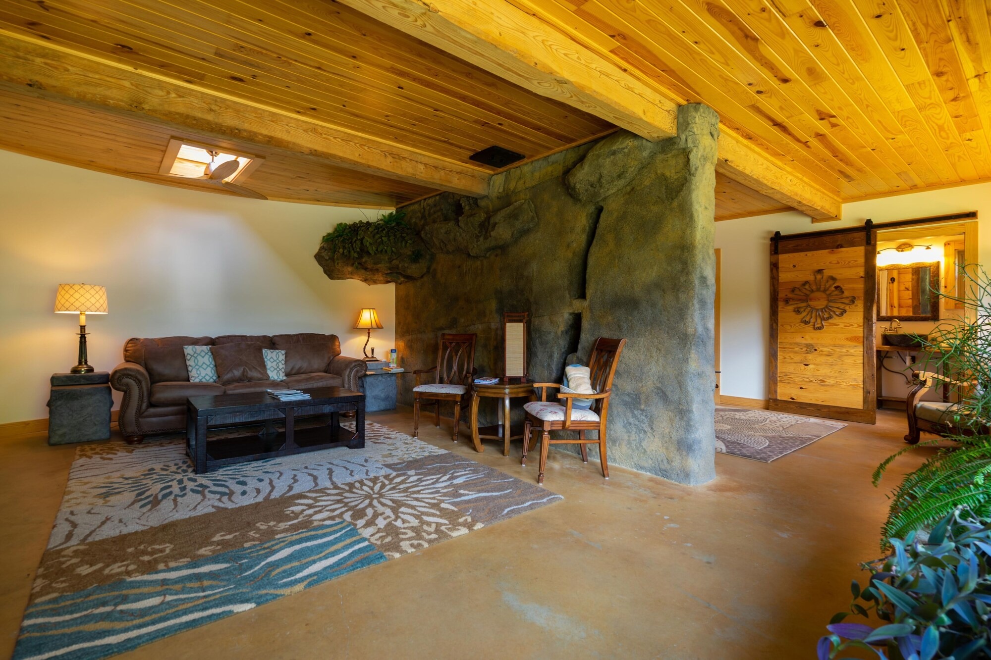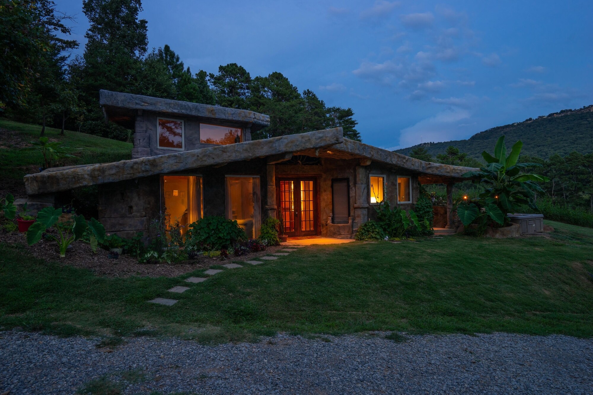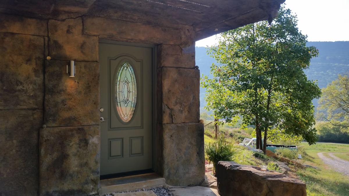 This hand-carved stone cottage has a ruins-like exterior and continues the theme as you go inside. Its well decorated cavern interior will wow you with its thoughtful layout and interesting construction technique.