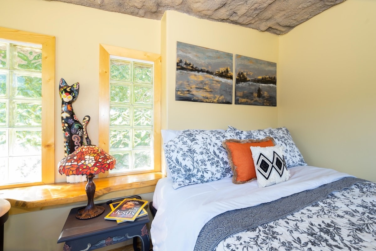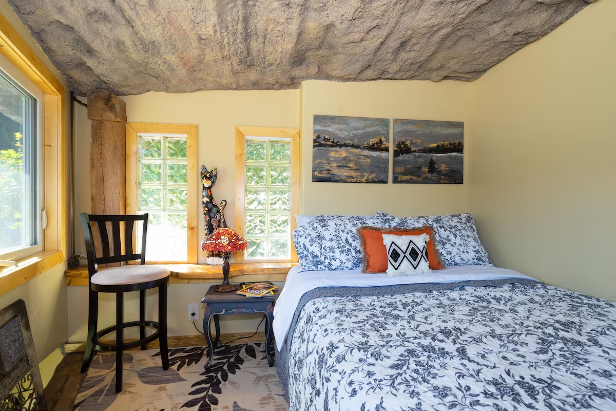 $129-180/nightThis hand-carved stone cottage has a ruins-like exterior and continues the theme as you go inside. Its well decorated cavern interior will wow you with its thoughtful layout and interesting construction technique.