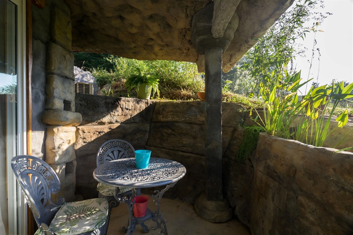 The Cavern on The Green is our second of two hand-carved, ruins style cottages. The other, the Bedrock Cave Cottage (vrbo# 971299) is next door. The two cottages sit in the middle of a twelve acre property and are situated such that each cottage has private areas outside. There is ample room for outdoor events and its a pretty sweet setup for an outdoor party with choice of bonfire sites.