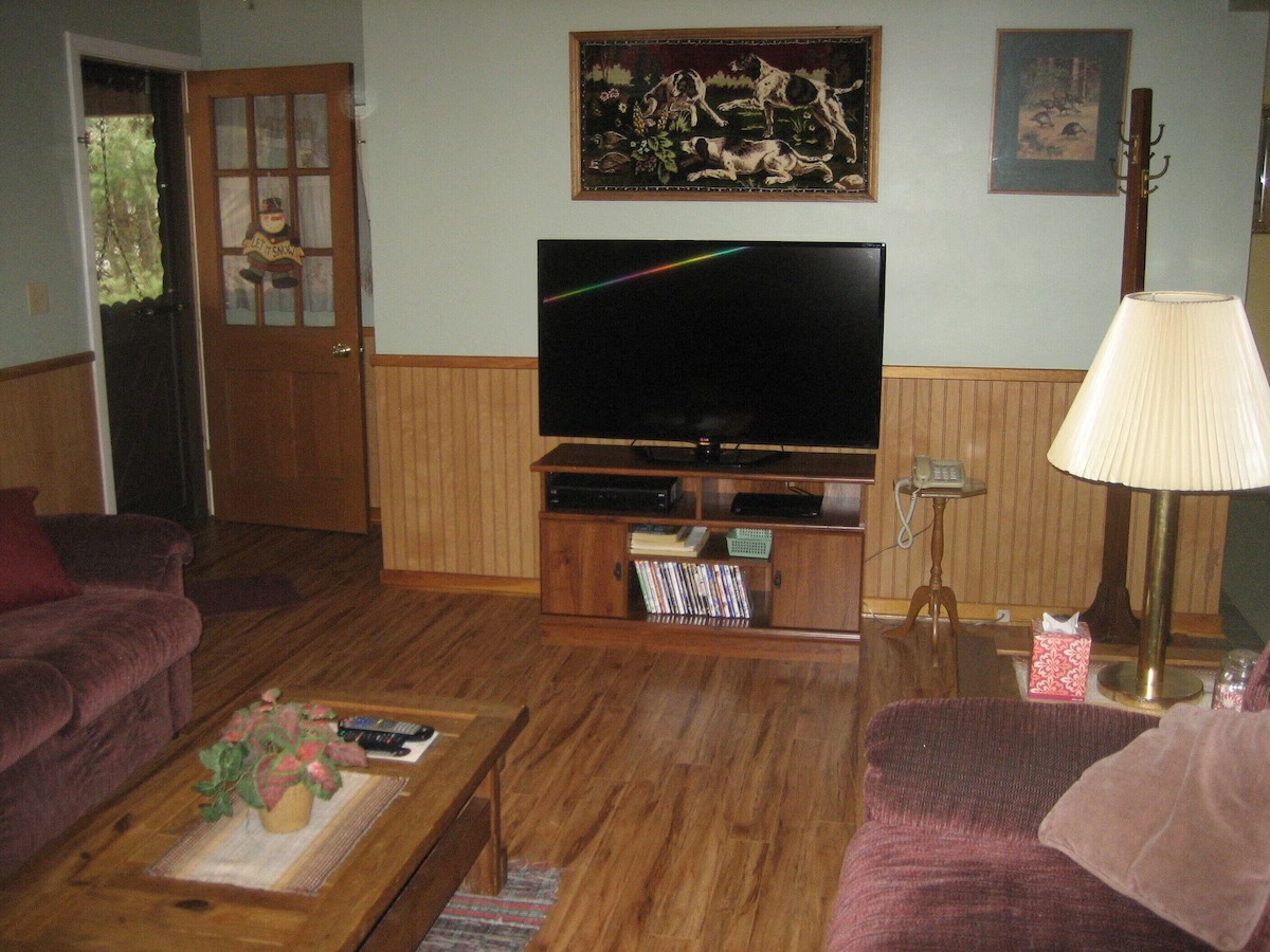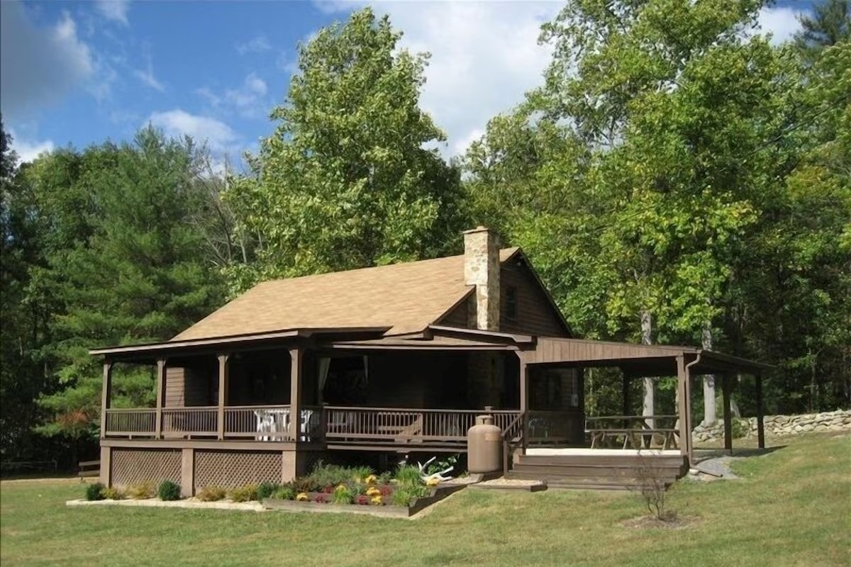 Secluded along the foothills of the Blue Ridge Mountains we have the ideal vacation getaway. This unspoiled paradise is perfect for a romantic rendezvous or a family retreat. With 10+ acres there is plenty of space to soak up the crisp, clean mountain air and enjoy the great outdoors. Walk, hike, or visit the nearby creek. Catch a glimpse of wildlife roaming the area. Play outside on the large front lawn and fire up the BBQ grill for a picnic on the covered patio. At the end of your day, watch the sunset from the porch swing, curl up by the gas fireplace or roast marshmellows around the campfire area. The cabin is located just outside Luray in the heart of the Shenandoah Valley, minutes from Skyline Drive and Luray Caverns. Open year round.
