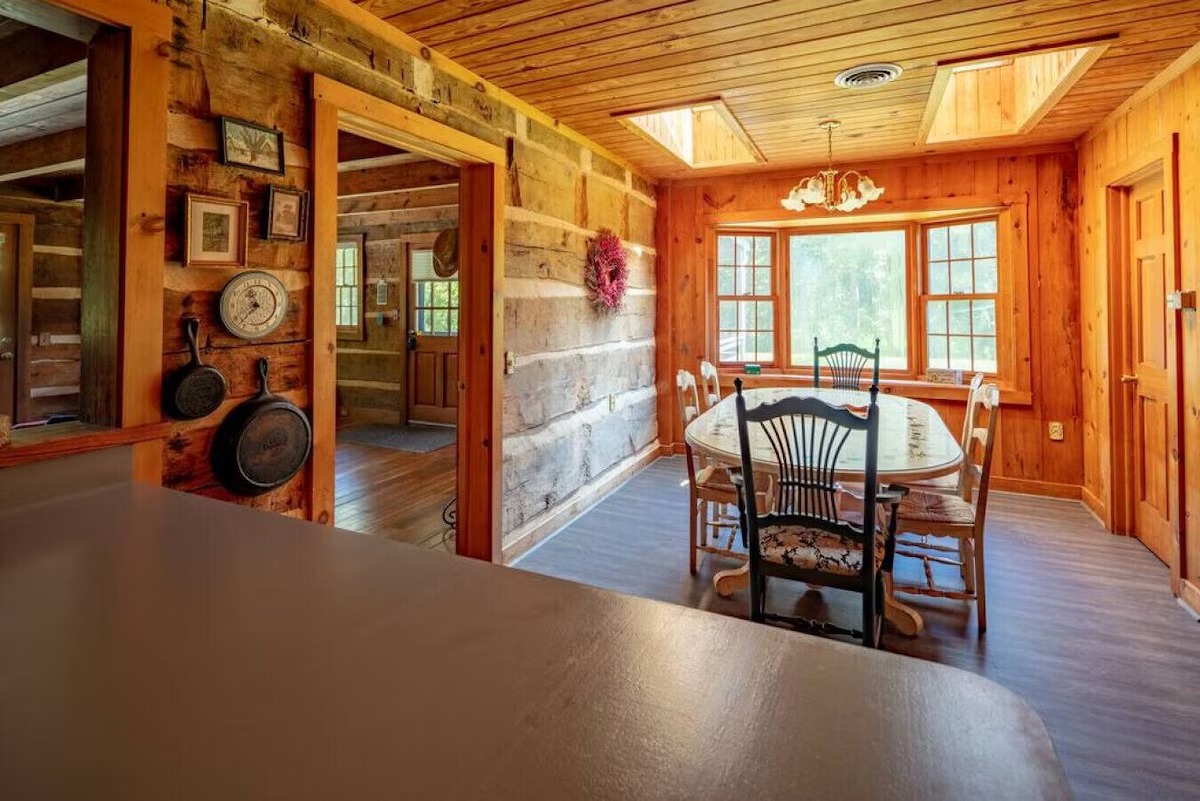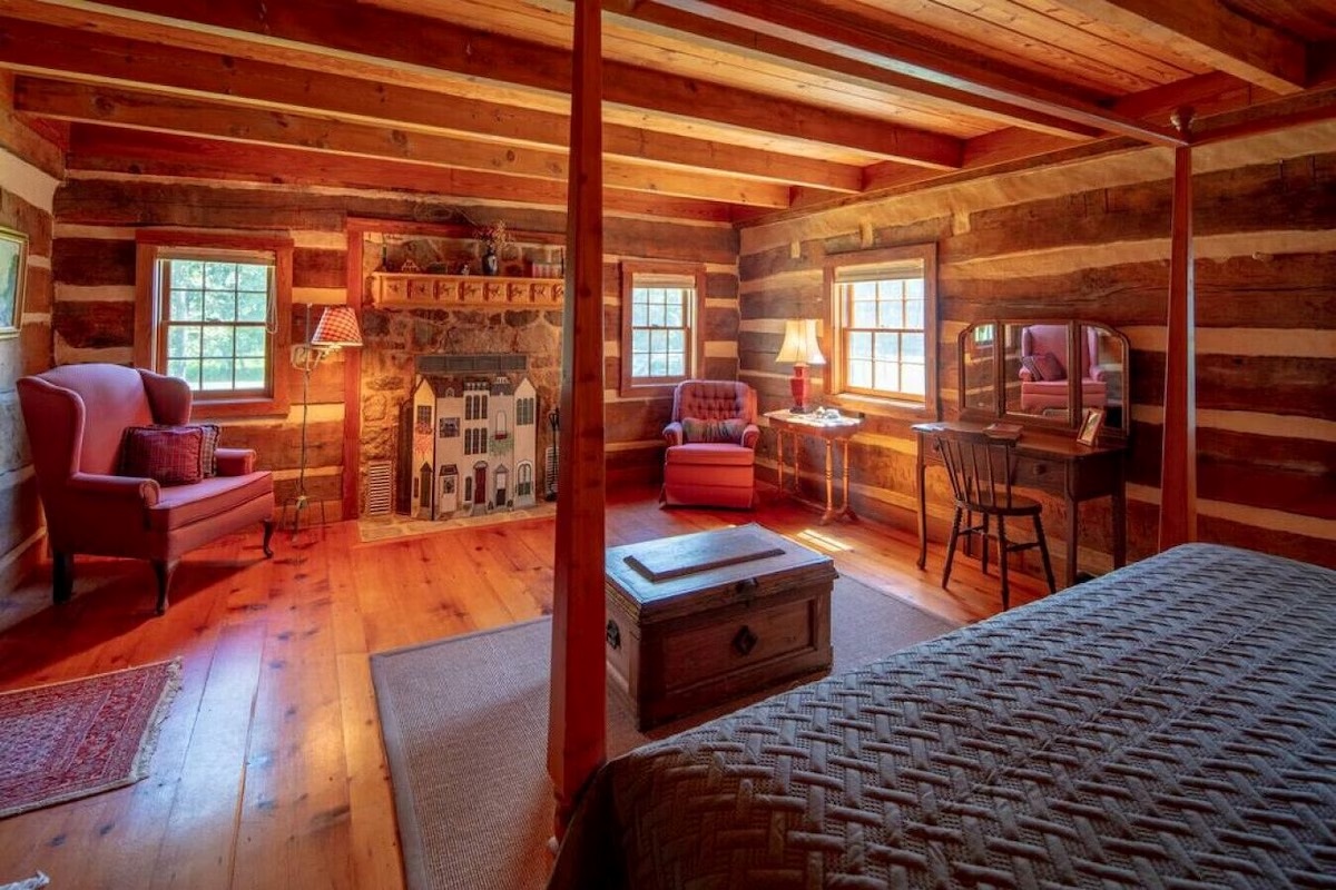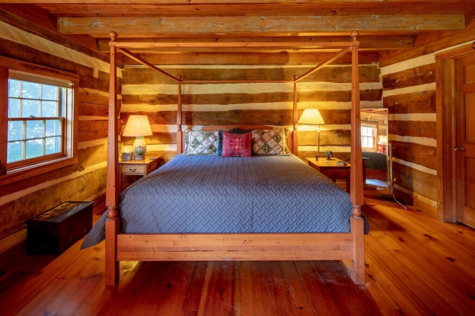 You will be staying in our Bass Reeves cabin, as shown in the listing pictures, which is our coziest cabin. This historic, pioneer style cabin features hand hewn logs dating back to the eighteen-hundreds and one-of-a-kind paintings by the original owner. The cabin was lovingly relocated from West Virginia and nestled on 16 acres in an idyllic setting along the bank of the Shenandoah River. Enjoy morning coffee on the large front porch while you watch the beauty of the mountains and river unfold. Spend the day canoeing, kayaking, tubing, or fishing and the evening catching fireflies, roasting marshmallows over a campfire, grilling, playing board games, or sipping spirits by the river. Enjoy one of TWO wood burning fireplaces (one in the living room and another in the master bedroom).