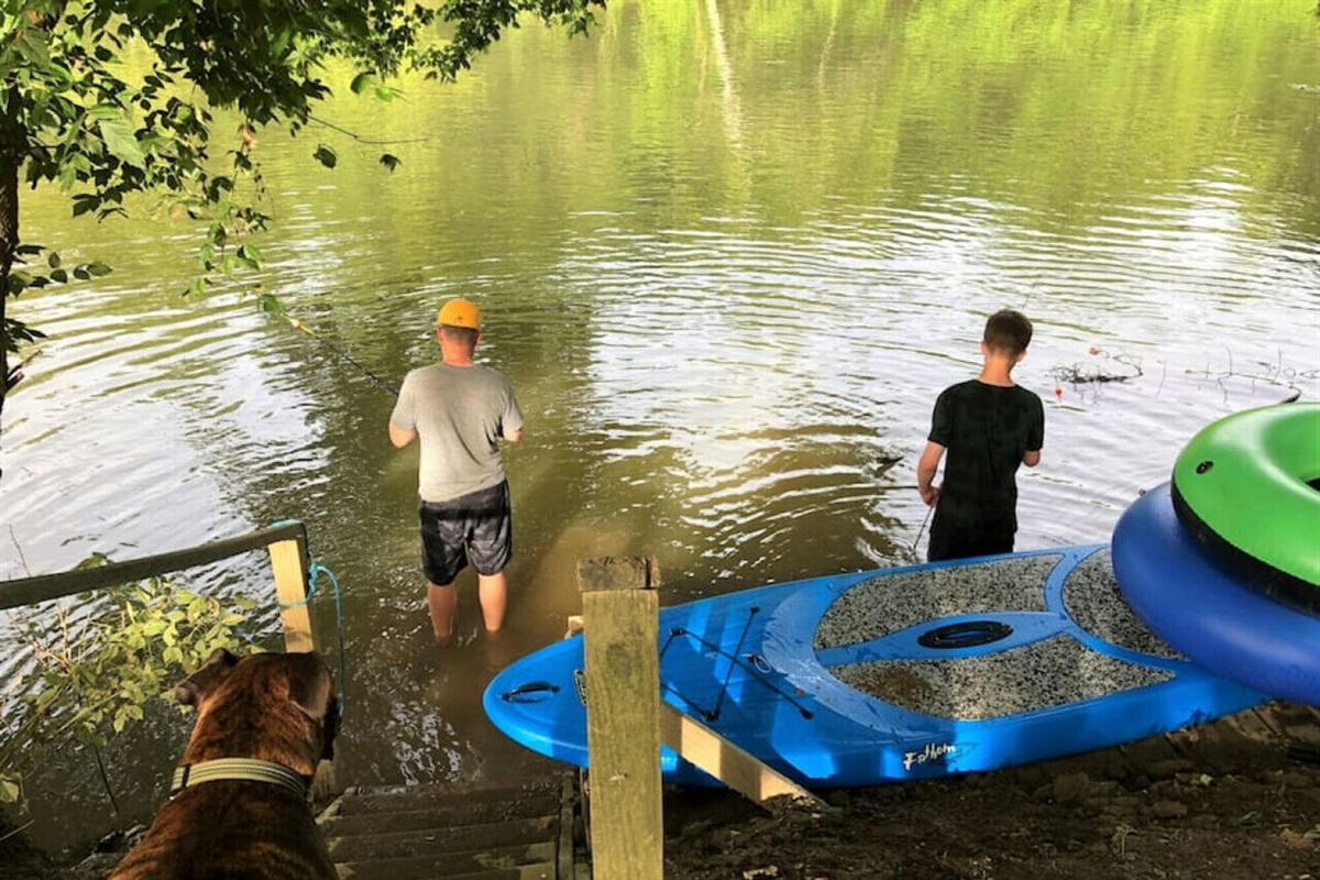 On site is a mile long trail that loops around the property. You have access to plenty of water equipment: tubes, kayaks, paddleboards, and canoes...enough water equipment for all guests to enjoy. We have plenty of adult life vests as well and four youth vests. You can access the river directly from our pier. There is a firepit next to the cabin and one down by the pier next to the river.